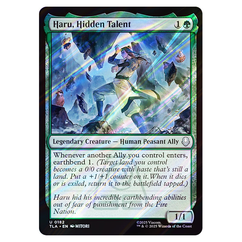 Haru, Hidden Talent is a Uncommon, Legendary Creature - Human Peasant Ally card from the Magic The Gathering set Avatar The Last Airbender (MTGSC-TLA-0182)