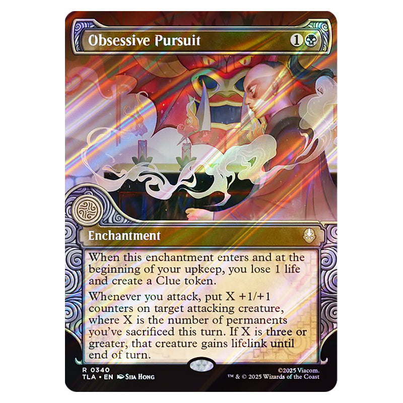 Obsessive Pursuit is a Rare, Enchantment card from the Magic The Gathering set Avatar The Last Airbender (MTGSC-TLA-0340)
