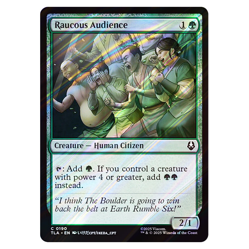 Raucous Audience is a Common, Creature - Human Citizen card from the Magic The Gathering set Avatar The Last Airbender (MTGSC-TLA-0190)