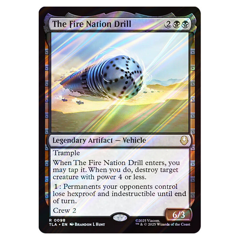 The Fire Nation Drill is a Rare, Legendary Artifact - Vehicle card from the Magic The Gathering set Avatar The Last Airbender (MTGSC-TLA-0098)