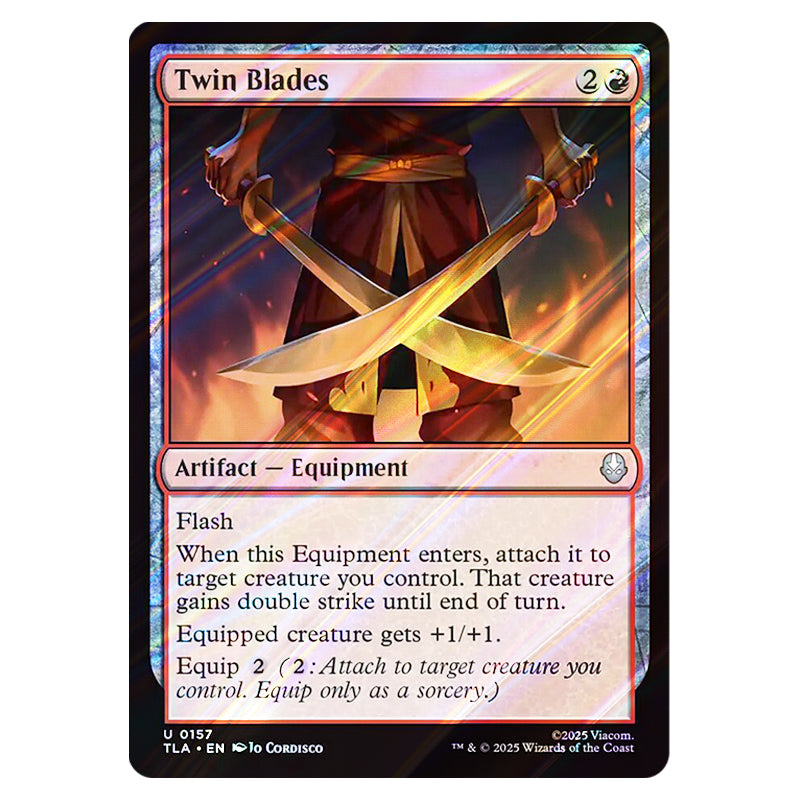 Twin Blades is a Uncommon, Artifact - Equipment card from the Magic The Gathering set Avatar The Last Airbender (MTGSC-TLA-0157)
