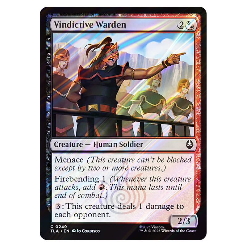 Vindictive Warden is a Common, Creature - Human Soldier card from the Magic The Gathering set Avatar The Last Airbender (MTGSC-TLA-0249)