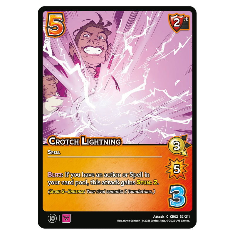 Crotch Lightning is a Common Attack card from the Universus set Crtical Role - Heroes of Exandria