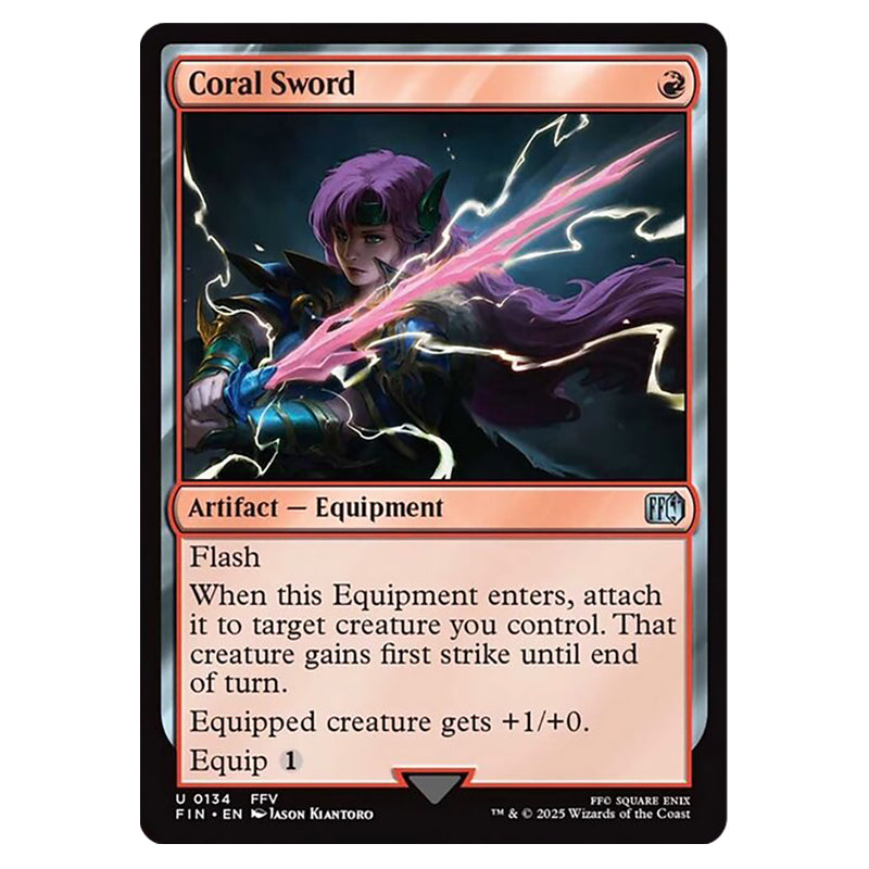 Coral Sword is a Uncommon, Artifact - Equipment card from the Magic The Gathering set Universes Beyond - Final Fantasy (MTGSC-FIN-0134)