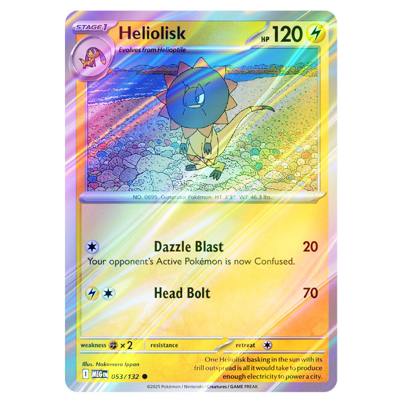 Heliolisk is a Common Lightning type card from Mega Evolution - Base Set Reverse Holo (053/132)