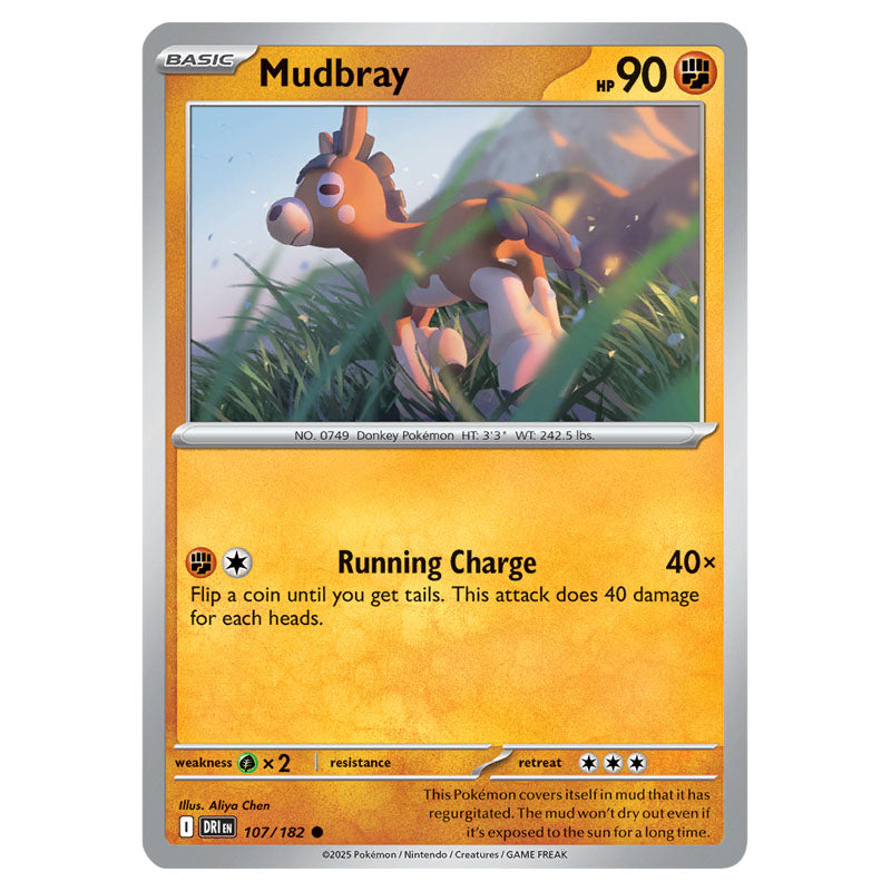 Mudbray is a Common (Basic) Fighting type Pokémon card from SV10 - Destined Rivals (107/182)