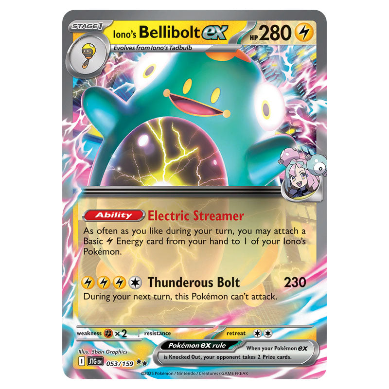 Iono's Bellibolt ex is a Lightning type Pokémon card from SV9 - Journey Together (053/159)