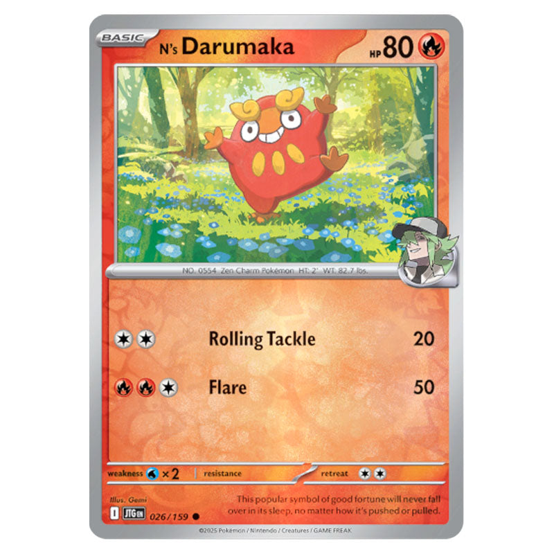 N's Darumaka is a Fire type Pokémon card from SV9 - Journey Together Reverse Holo (026/159)
