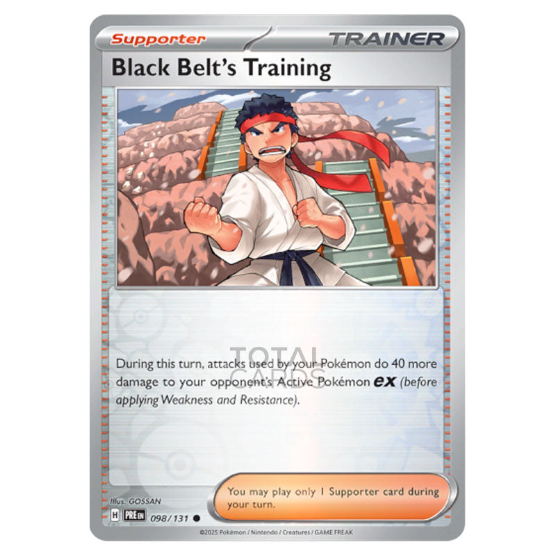 Black Belt's Training is a Common (Supporter) type Trainer card from SV8.5 - Prismatic Evolutons Reverse Holo (098/131)