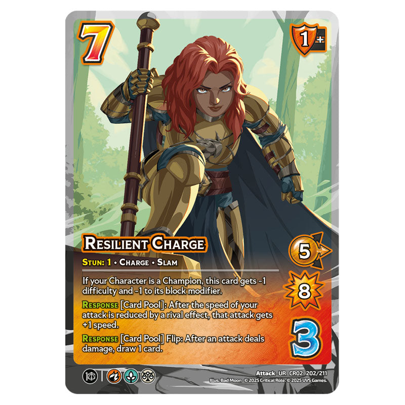 Resilient Charge is a UltraRare Attack card from the Universus set Crtical Role - Heroes of Exandria