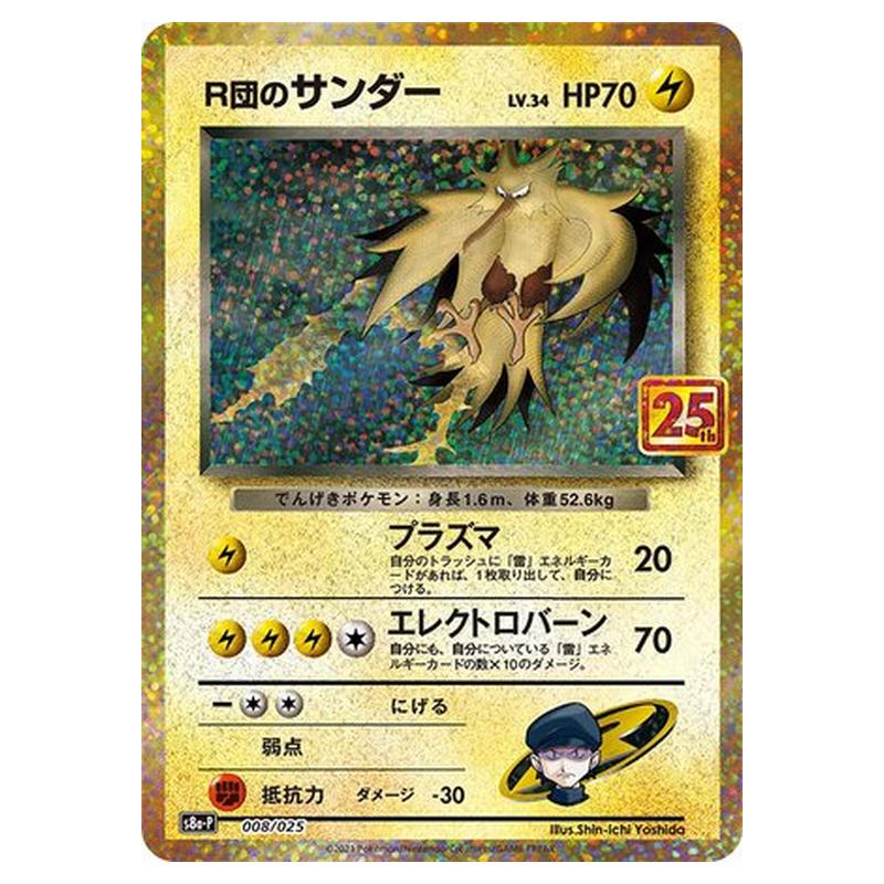Rocket's Zapdos 8/25 is a Pokémon card from the Japanese set Promo Card Pack 25th Anniversary Edition.