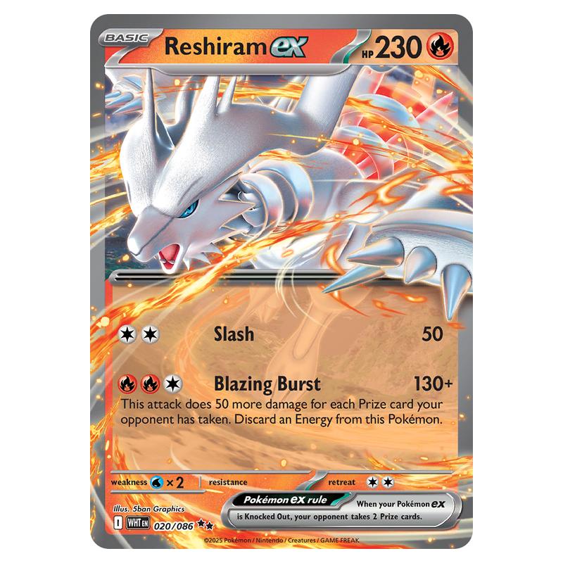 Reshiram ex is a Double Rare (Basic) Colorless type card from White Flare (074/086)