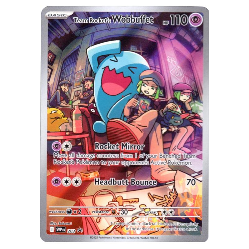 Team Rocket's Wobbuffet SVP203 is a Pokemon Card from the Set SV Black Star Promos.