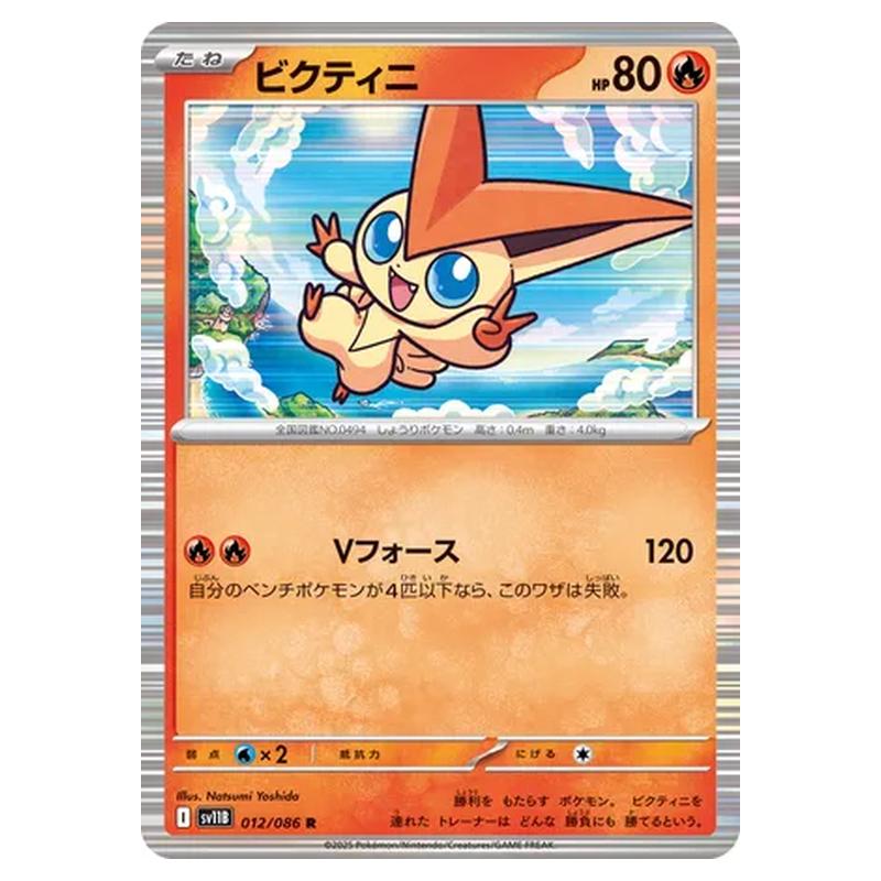 Victini 012/086 is a Pokémon card from the Japanese set Black Bolt.