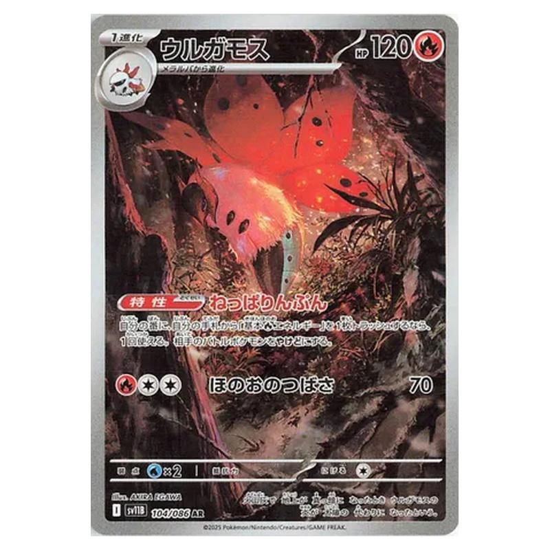 Volcarona 104/086 is a Pokémon card from the Japanese set Black Bolt.