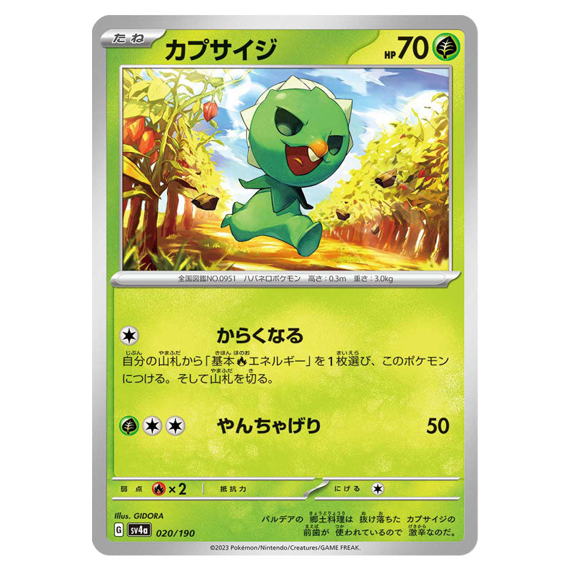 Capsakid is a Grass type card from SV4a - Shiny Treasure ex (020/190)