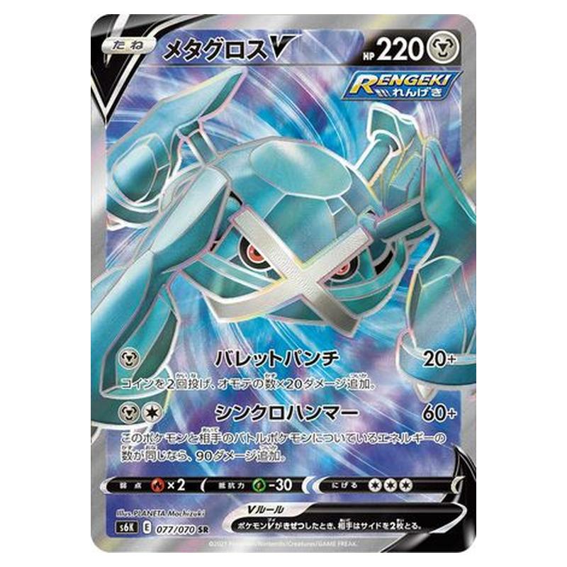 Metagross V 77/95 is a Pokémon card from the Japanese set Jet-Black Spirit.