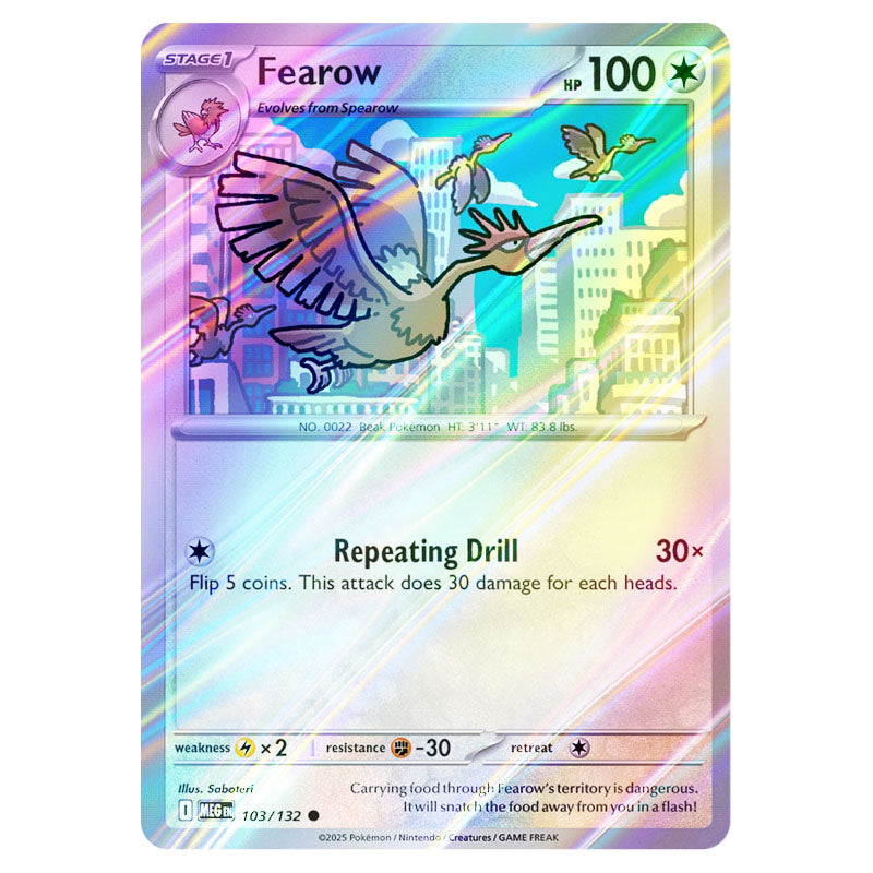 Fearow is a Common Colorless type card from Mega Evolution - Base Set Reverse Holo (103/132)