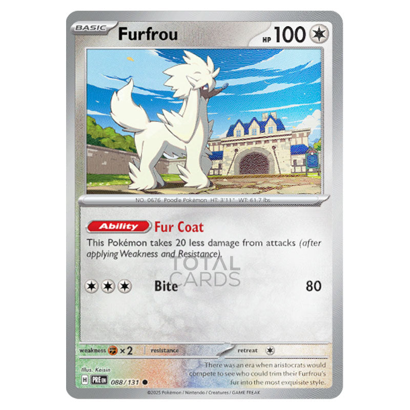 Furfrou is a Common (Basic) Colorless type Pokémon card from SV8.5 - Prismatic Evolutons Reverse Holo Master Ball (088/131)