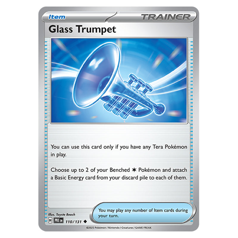 Glass Trumpet is a Uncommon (Item) type Trainer card from SV8.5 - Prismatic Evolutons (110/131)