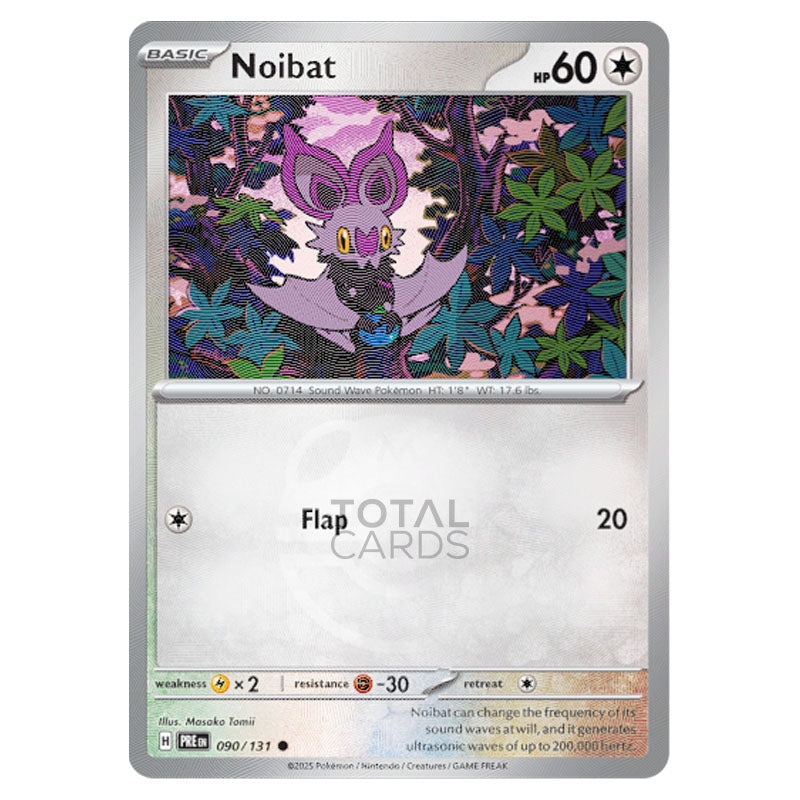 Noibat is a Common (Basic) Colorless type Pokémon card from SV8.5 - Prismatic Evolutons Reverse Holo Master Ball (090/131)