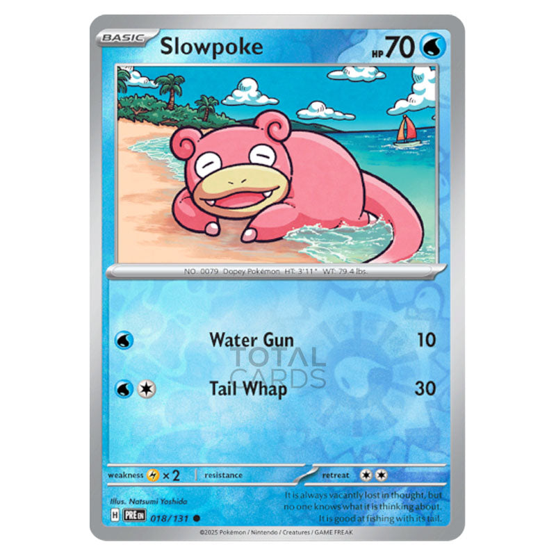 Slowpoke is a Common (Basic) Water type Pokémon card from SV8.5 - Prismatic Evolutons Reverse Holo (018/131)