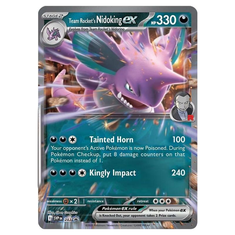 Team Rocket's Nidoking ex is a Pokemon Card from the Set SV Black Star Promos.