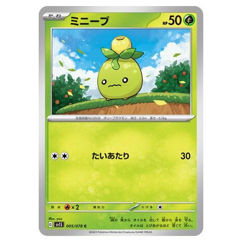 Smoliv 005/108 is a Pokémon card from the Japanese set Scarlet ex.