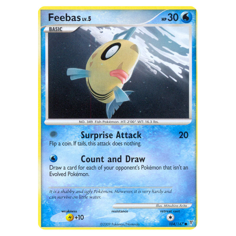 Feebas is a Common (Basic) 30 type Pokémon card from PL3 - Supreme Victors (104/147)