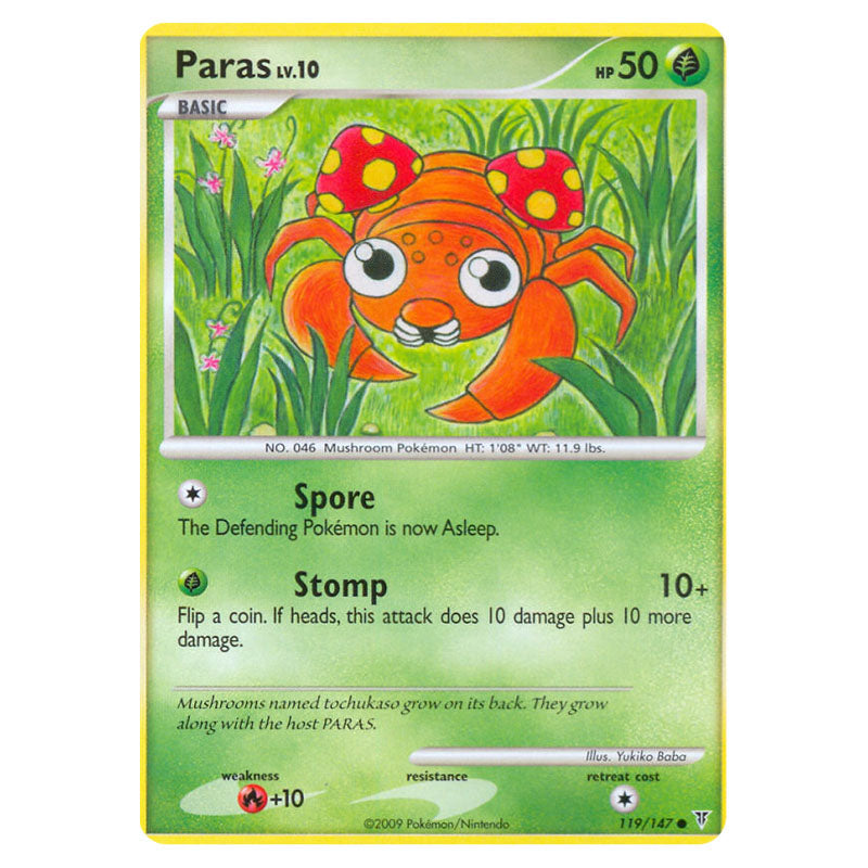 Paras is a Common (Basic) 50 type Pokémon card from PL3 - Supreme Victors (119/147)