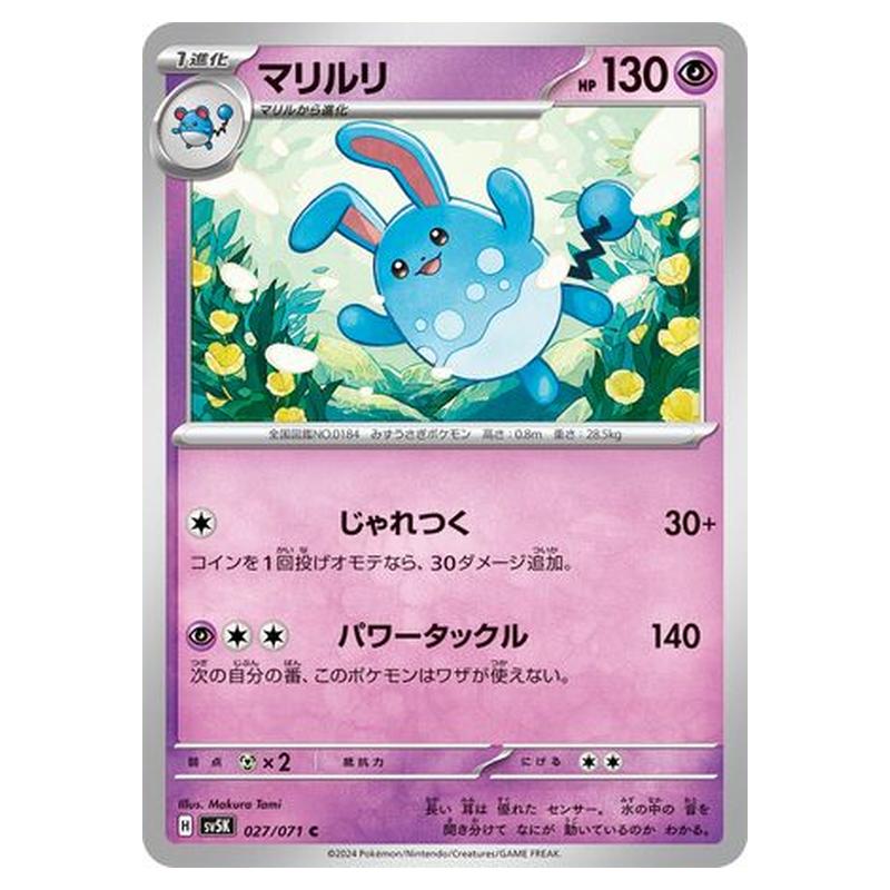 Azumarill 027/071 is a Pokémon card from the Japanese set Wild Force.