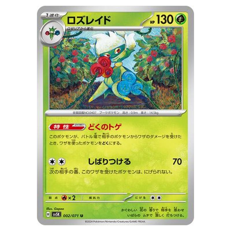 Roserade 002/071 is a Pokémon card from the Japanese set Wild Force.