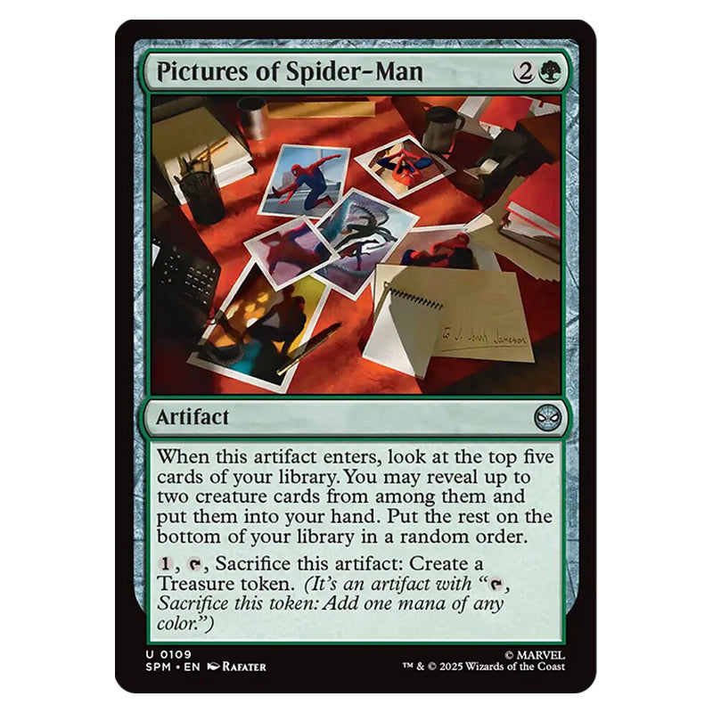 Pictures of Spider-Man is a Uncommon, Artifact card from the Magic The Gathering set Marvel's Spider-Man (MTGSC-SPM-0109)