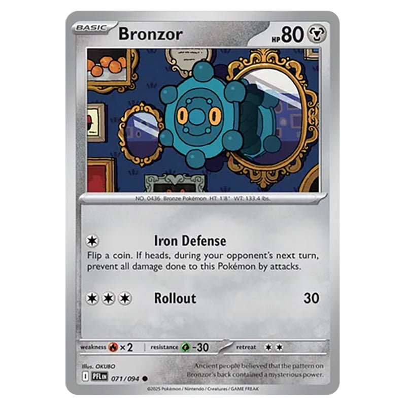 Bronzor is a Common Metal type card from Mega Evolution - Phantasmal Flames (071/132)