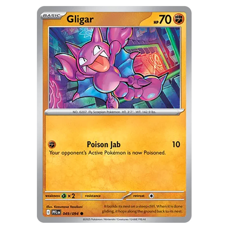 Gligar is a Common Fighting type card from Mega Evolution - Phantasmal Flames (049/132)