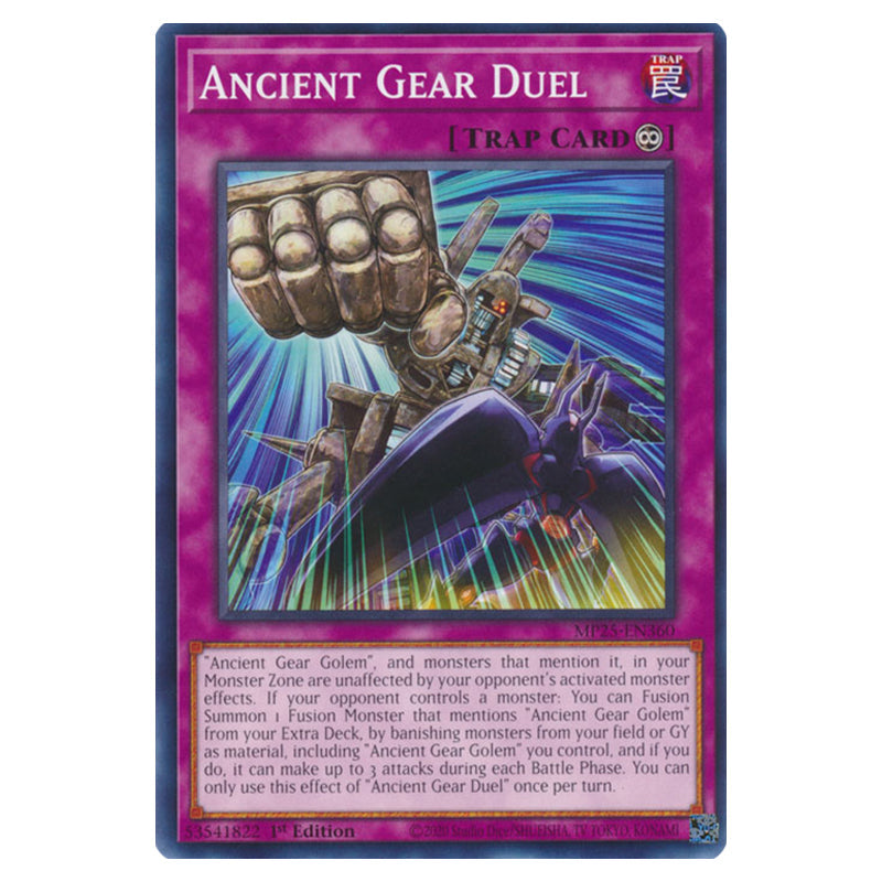 Ancient Gear Duel is a Common, Continuous Trap from the Yugioh set 2025 Mega Pack (MP25-EN360)