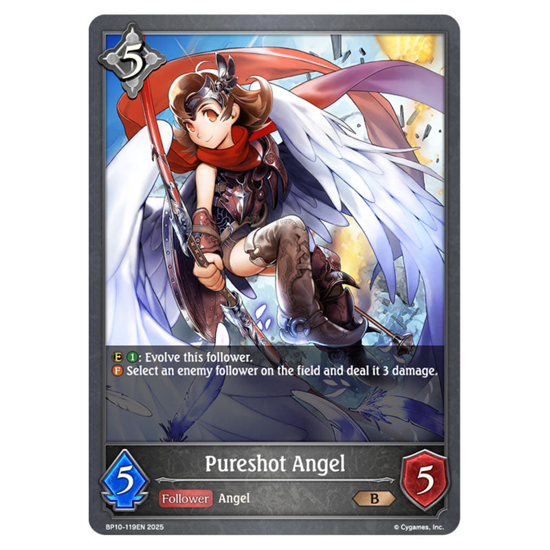 Pureshot Angel is a Angel card from the Shadowverse Evolve set Gods of the Arcana (BP10-119EN)