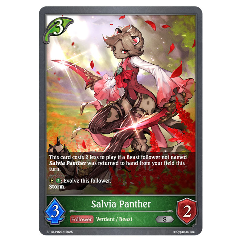 Salvia Panther is a Verdant / Beast card from the Shadowverse Evolve set Gods of the Arcana (BP10-P02EN)