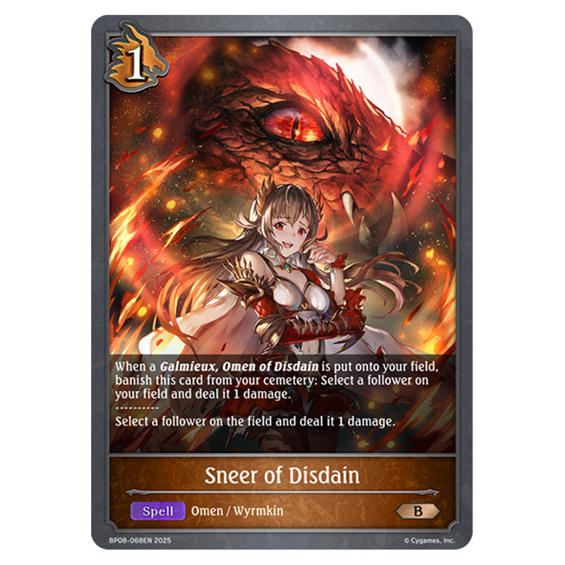 Sneer of Disdain is a Spell card from the Shadowverse Evolve set Alterchaotica (BP08-068EN)