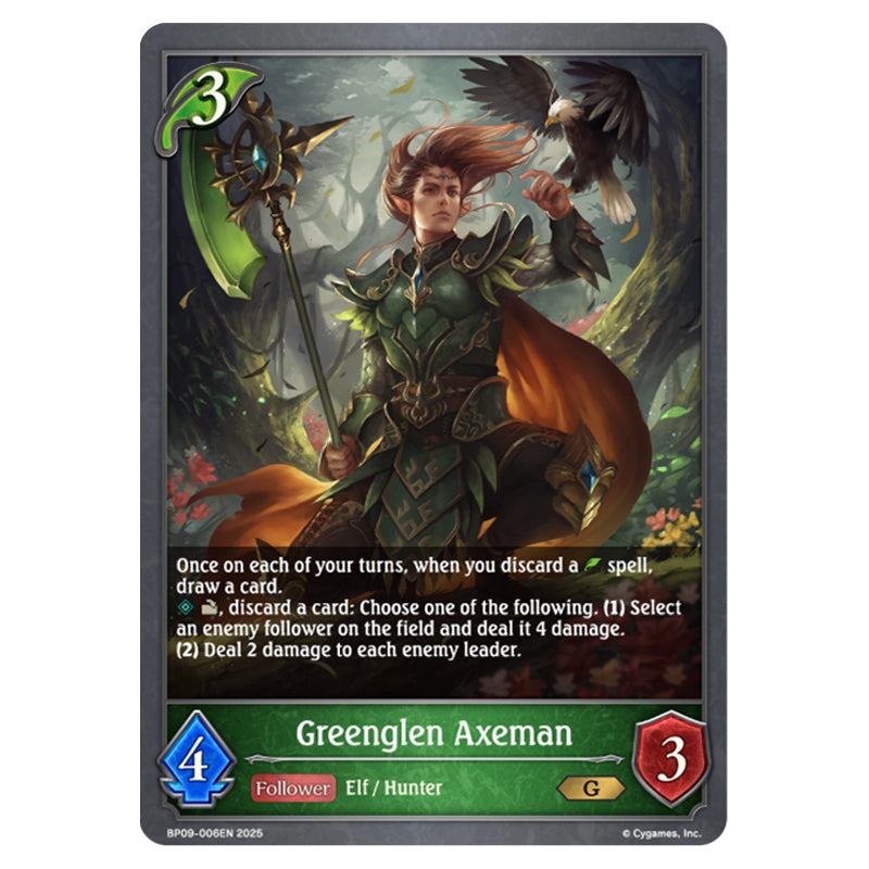 Greenglen Axeman is a Follower card from the Shadowverse Evolve set Duet of Dawn and Dusk (BP09-006EN)