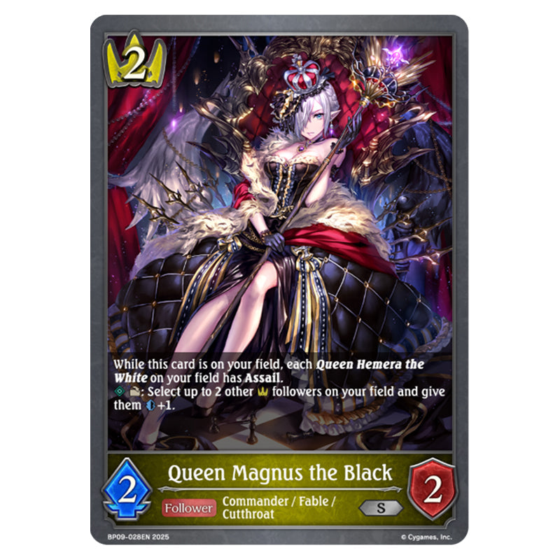 Queen Magnus the Black is a Follower card from the Shadowverse Evolve set Duet of Dawn and Dusk (BP09-028EN)