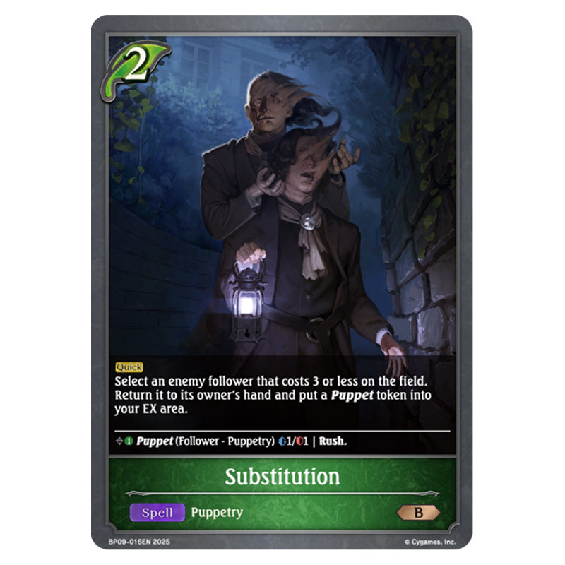 Substitution is a Spell card from the Shadowverse Evolve set Duet of Dawn and Dusk (BP09-016EN)