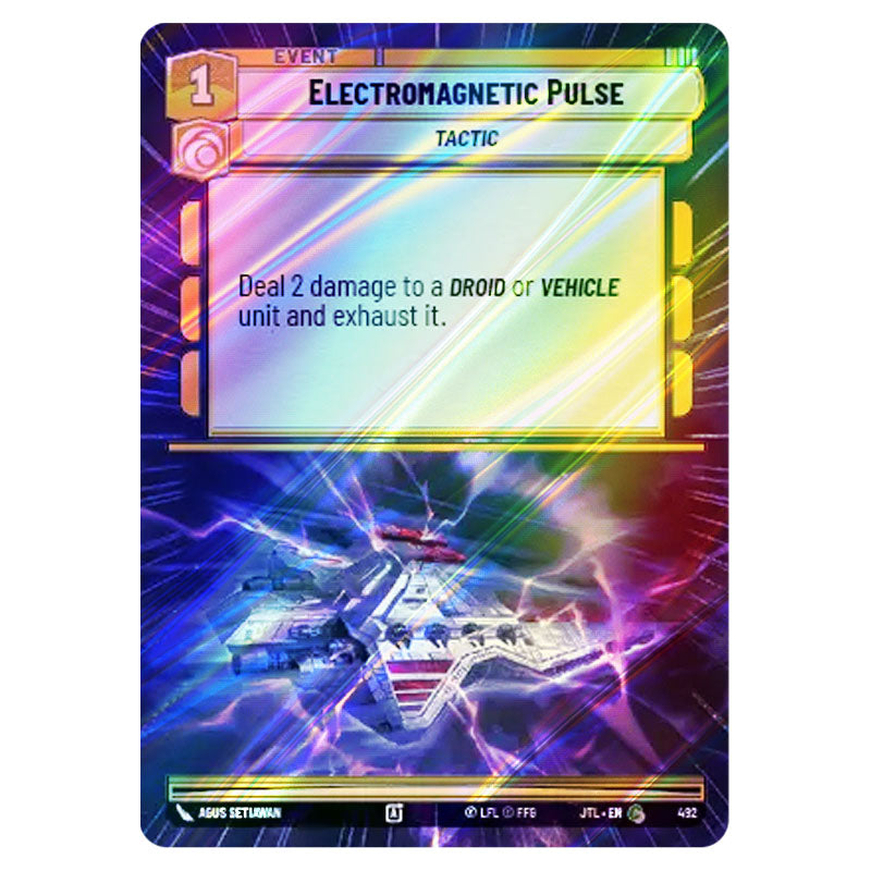 Electromagnetic Pulse is a Common hyperspace foil card from the Star Wars Unlimited set Jump to Lightspeed (964)
