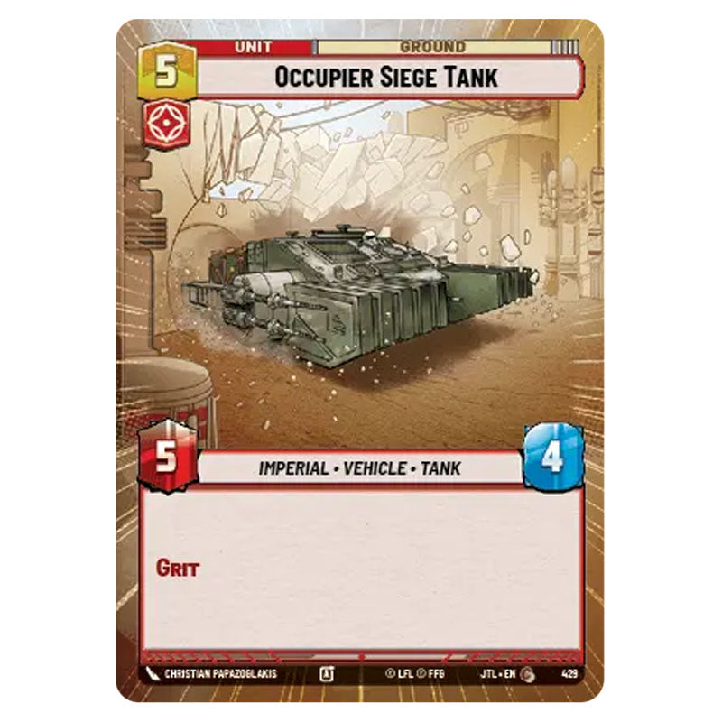Occupier Siege Tank is a Common hyperspace card from the Star Wars Unlimited set Jump to Lightspeed (429)