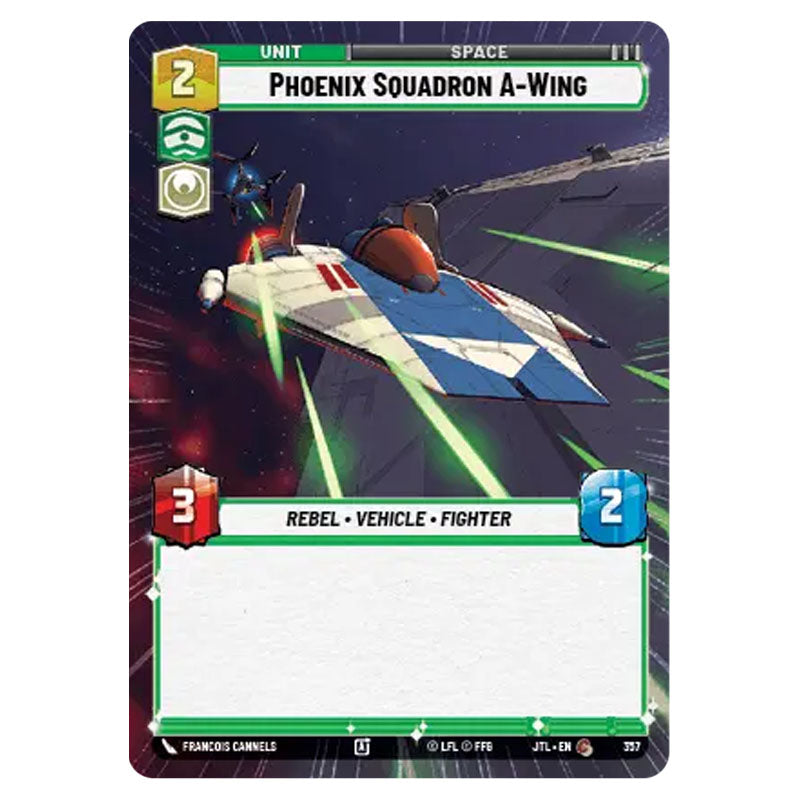 Phoenix Squadron A-Wing is a Common hyperspace card from the Star Wars Unlimited set Jump to Lightspeed (357)