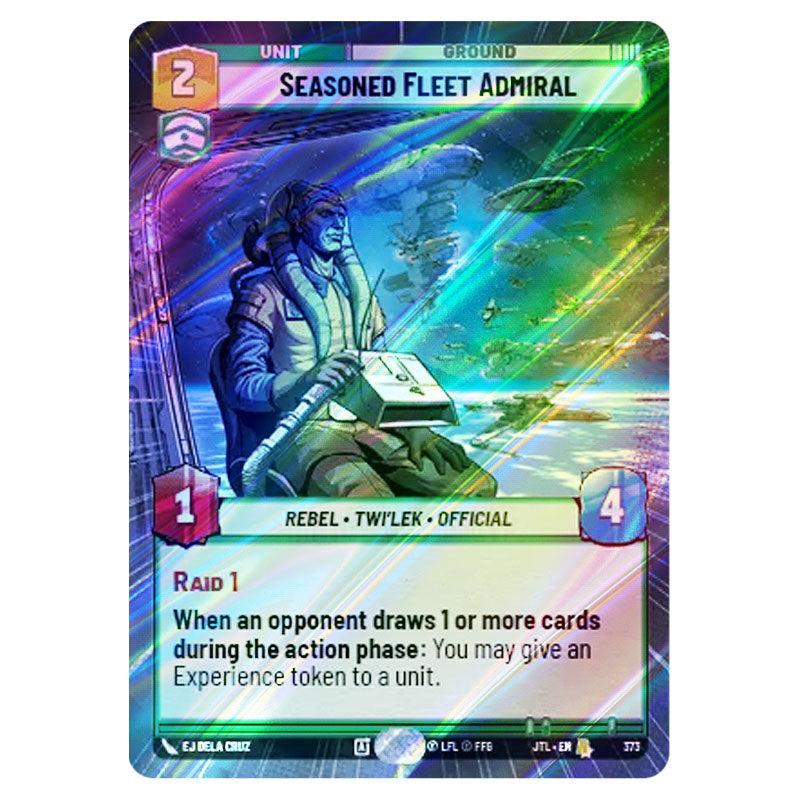Seasoned Fleet Admiral is a Rare hyperspace foil card from the Star Wars Unlimited set Jump to Lightspeed (845)