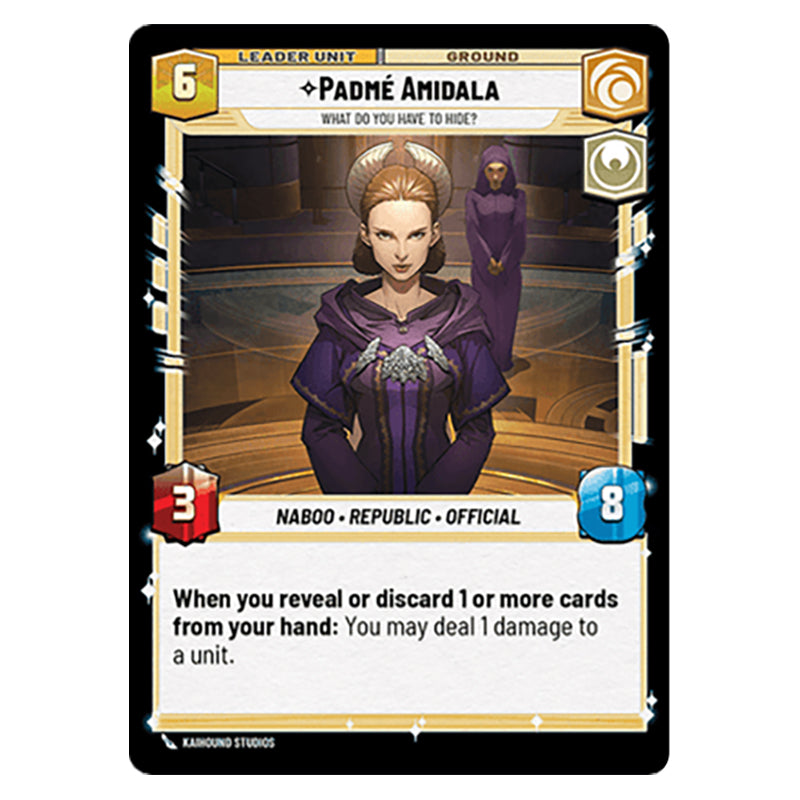 Padmé Amidala What Do You Have to Hide? is a Special card from the Star Wars Unlimited set Secrets of Power (16/264)