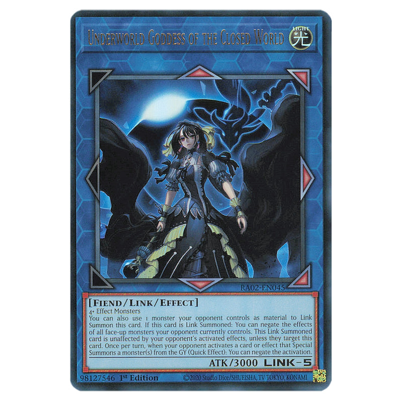 Underworld Goddess of the Closed World is a Ultra Rare, Effect Link Monster from the Yugioh set 25th Anniversary Rarity Collection II (RA02-EN045)