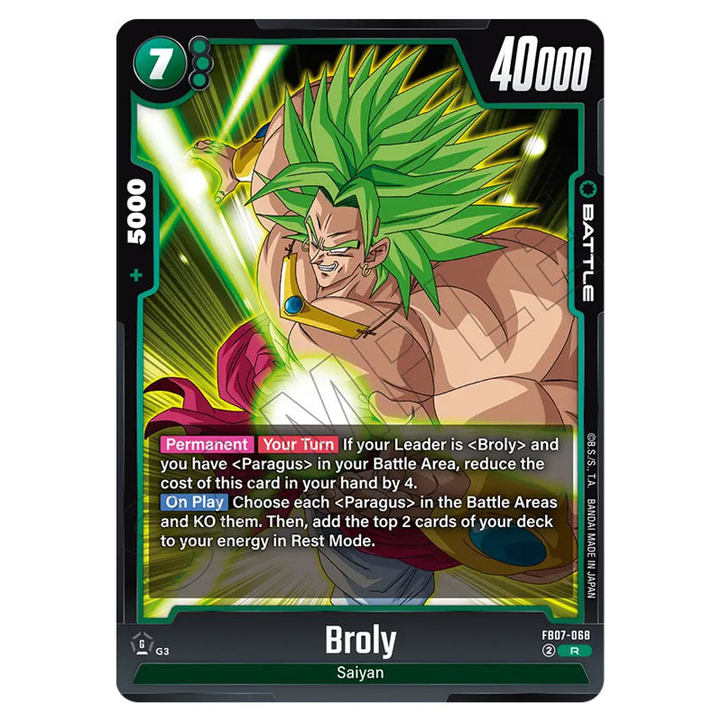 Broly is a Rare, Green card from the Dragon Ball Super Fusion World set FB07 - Wish for Shenron (FB07-068)