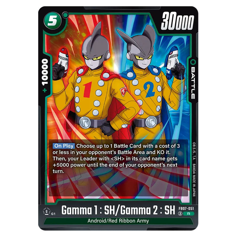 Gamma 1 : SH/Gamma 2 : SH is a Rare, Green card from the Dragon Ball Super Fusion World set FB07 - Wish for Shenron (FB07-051)